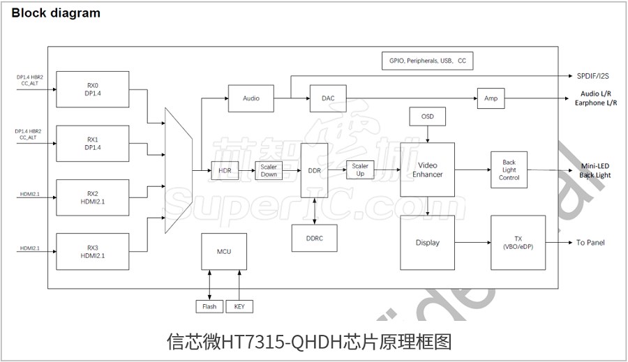 (6)集成多个HDMI2.1/DP1.4兼容接收器,USB2.0接口支持Host和Device